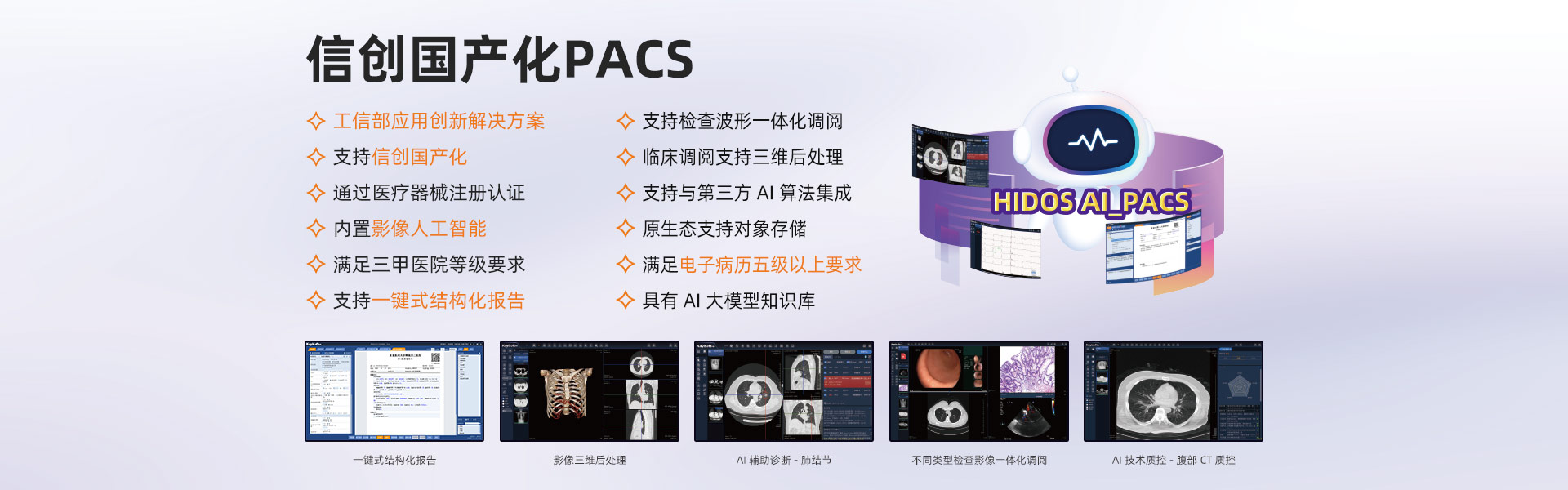 影像信息化深耕15年以上,影像產(chǎn)品群全面,擁有全院PACS/RIS、影像檢查醫(yī)技臨床預(yù)約、云影像(云膠片)、區(qū)域影像暨檢查互認(rèn)、影像中臺(tái)、影像人工智能、MDT多學(xué)科聯(lián)合會(huì)診、遠(yuǎn)程醫(yī)療協(xié)同平臺(tái)解決方案,是國(guó)內(nèi)極少能全面提供上述全套產(chǎn)品群的廠家之一。